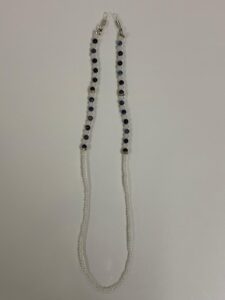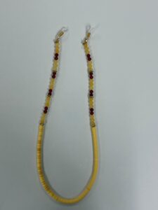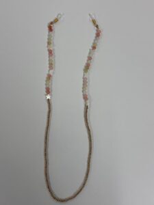 A colorful beaded eyeglass holder made with assorted polished beads and secure rubber loops.